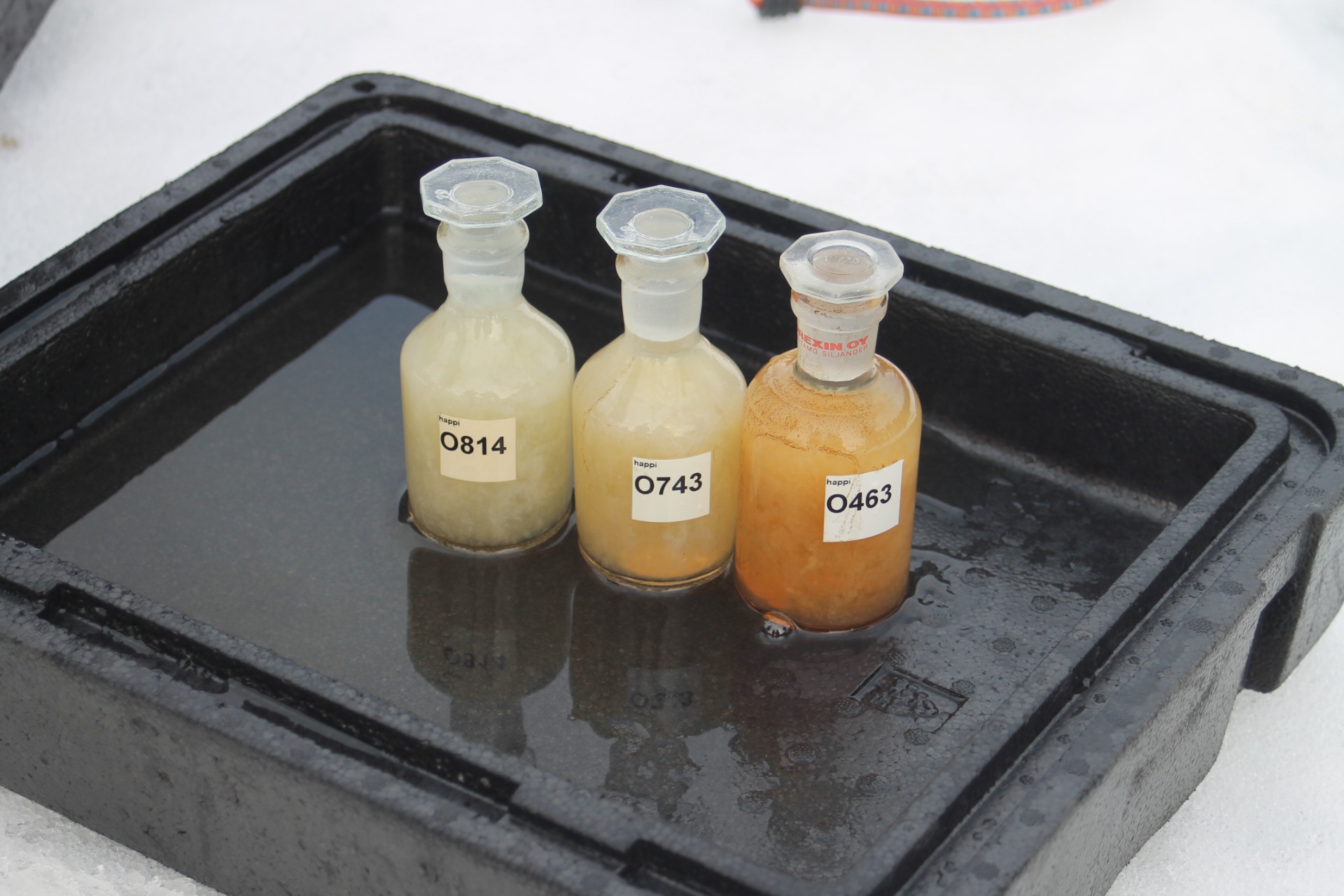2. Seurattiiin vesinäytteillä järven ja laskuojan veden tilaa talvi- ja kesäaikana.